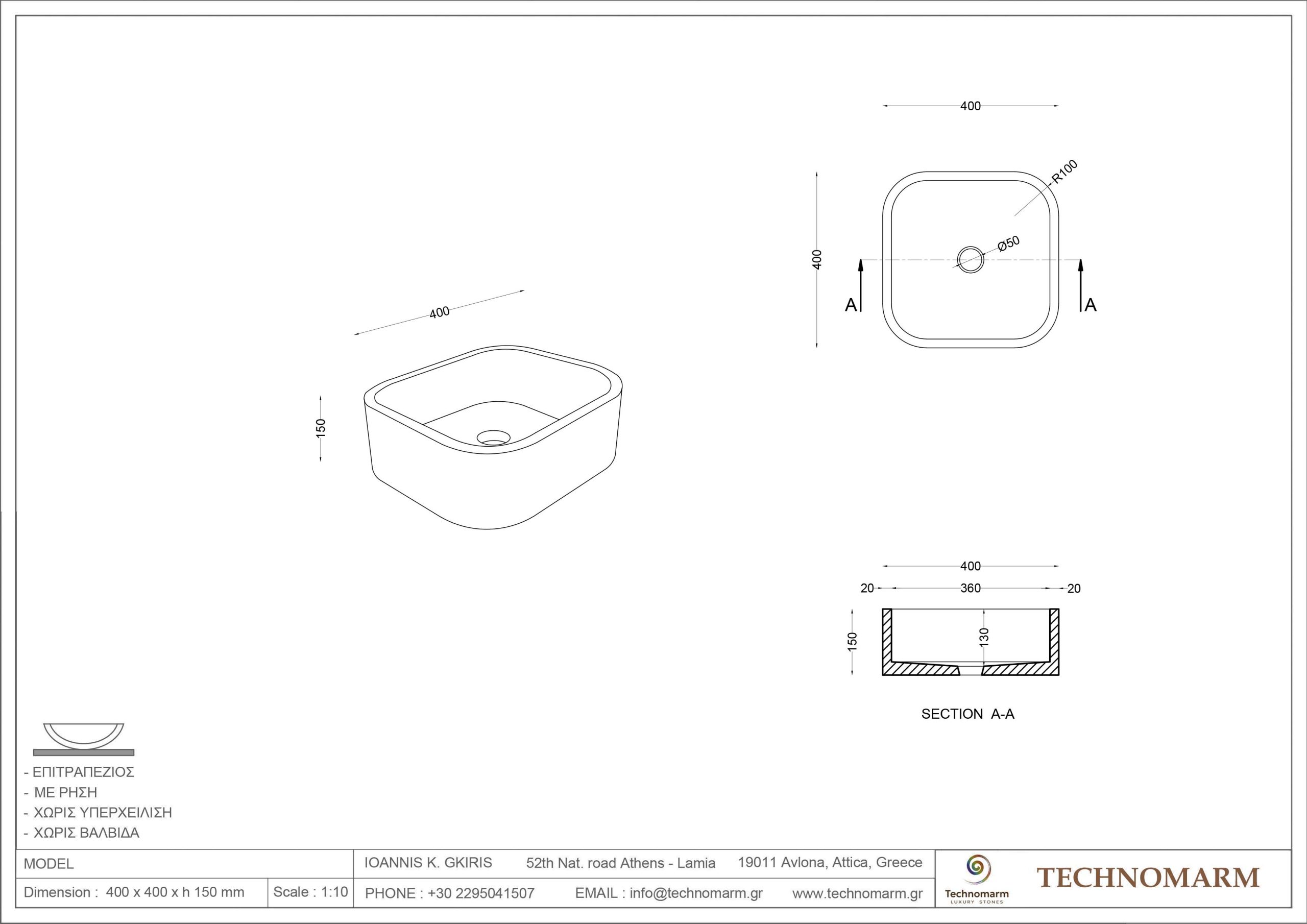Το μάρμαρο, ως φυσικό υλικό, ενδέχεται να παρουσιάζει μικρές διαφορές στην απόχρωση ή φυσικές οπές. Αυτά τα στοιχεία δεν αποτελούν ατέλειες, αλλά χαρακτηριστικά της αυθεντικότητάς του.