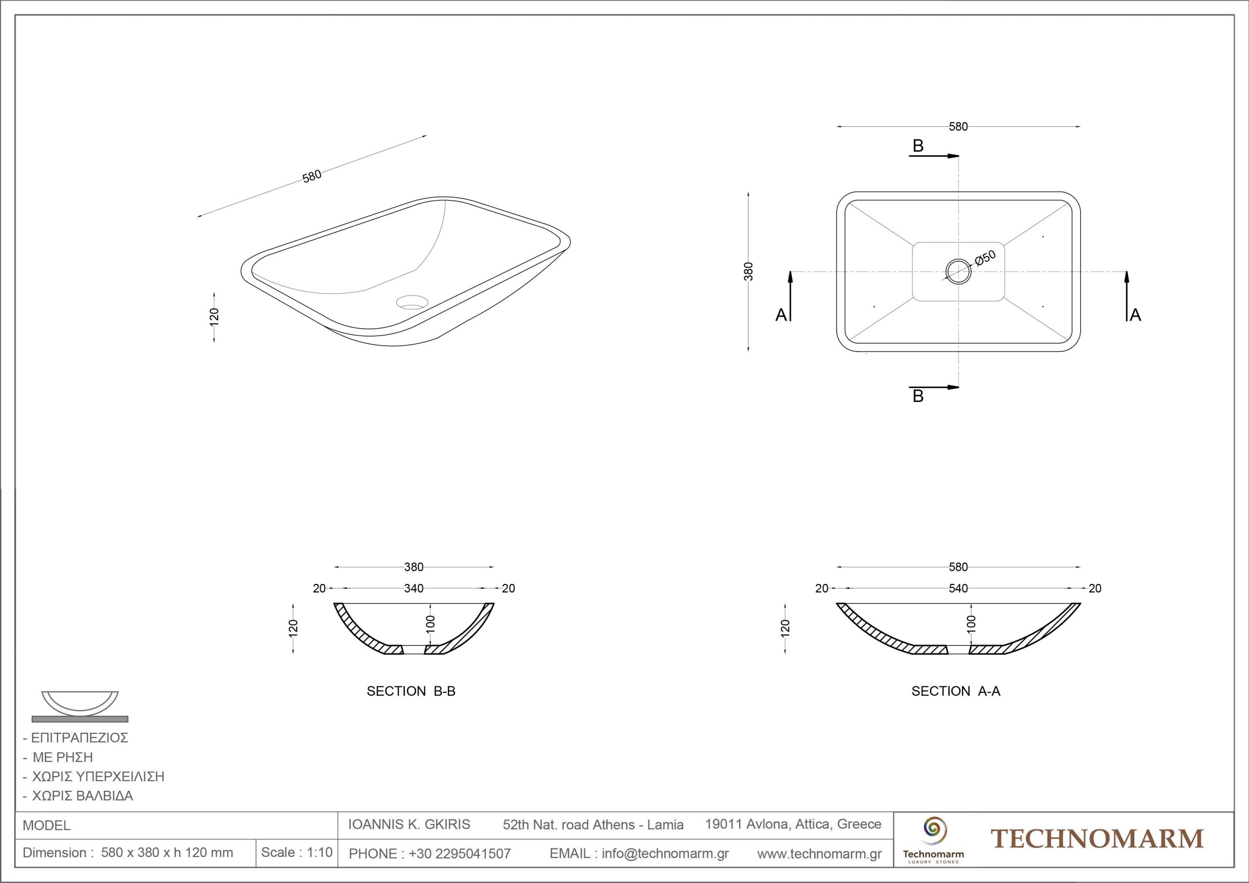 Το μάρμαρο, ως φυσικό υλικό, ενδέχεται να παρουσιάζει μικρές διαφορές στην απόχρωση ή φυσικές οπές. Αυτά τα στοιχεία δεν αποτελούν ατέλειες, αλλά χαρακτηριστικά της αυθεντικότητάς του.