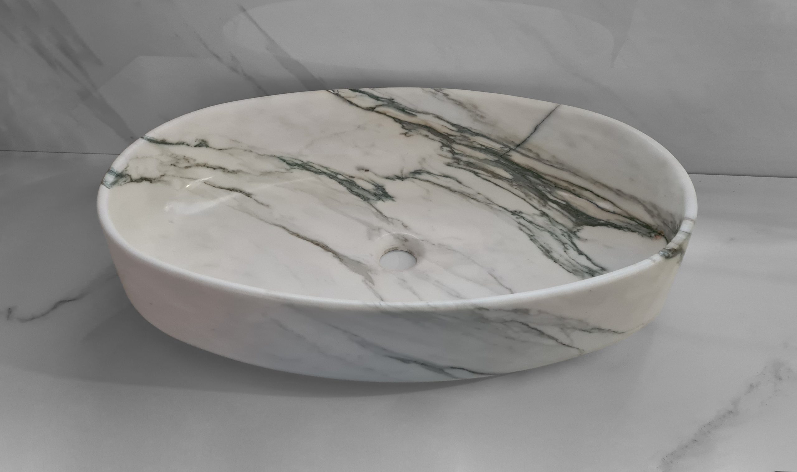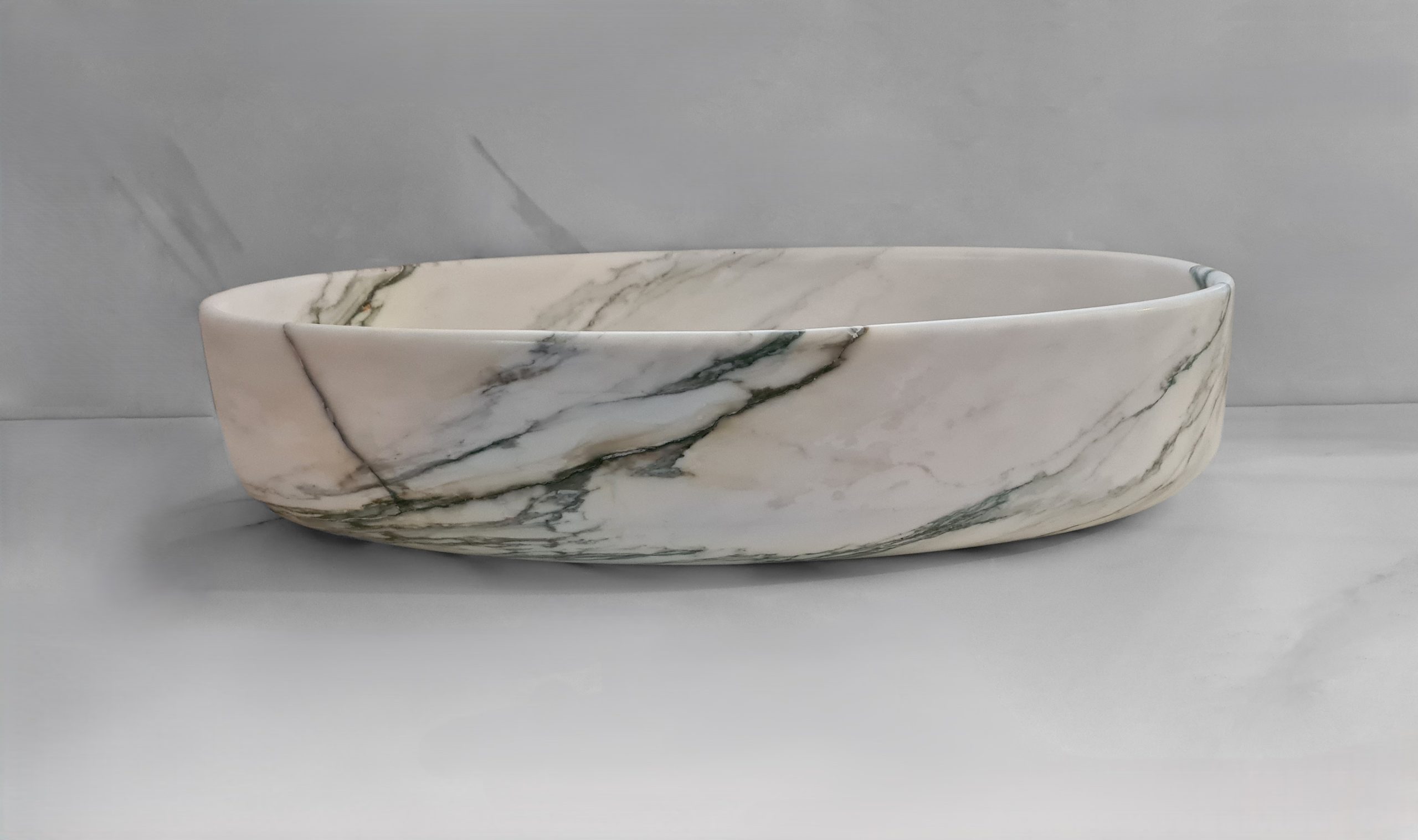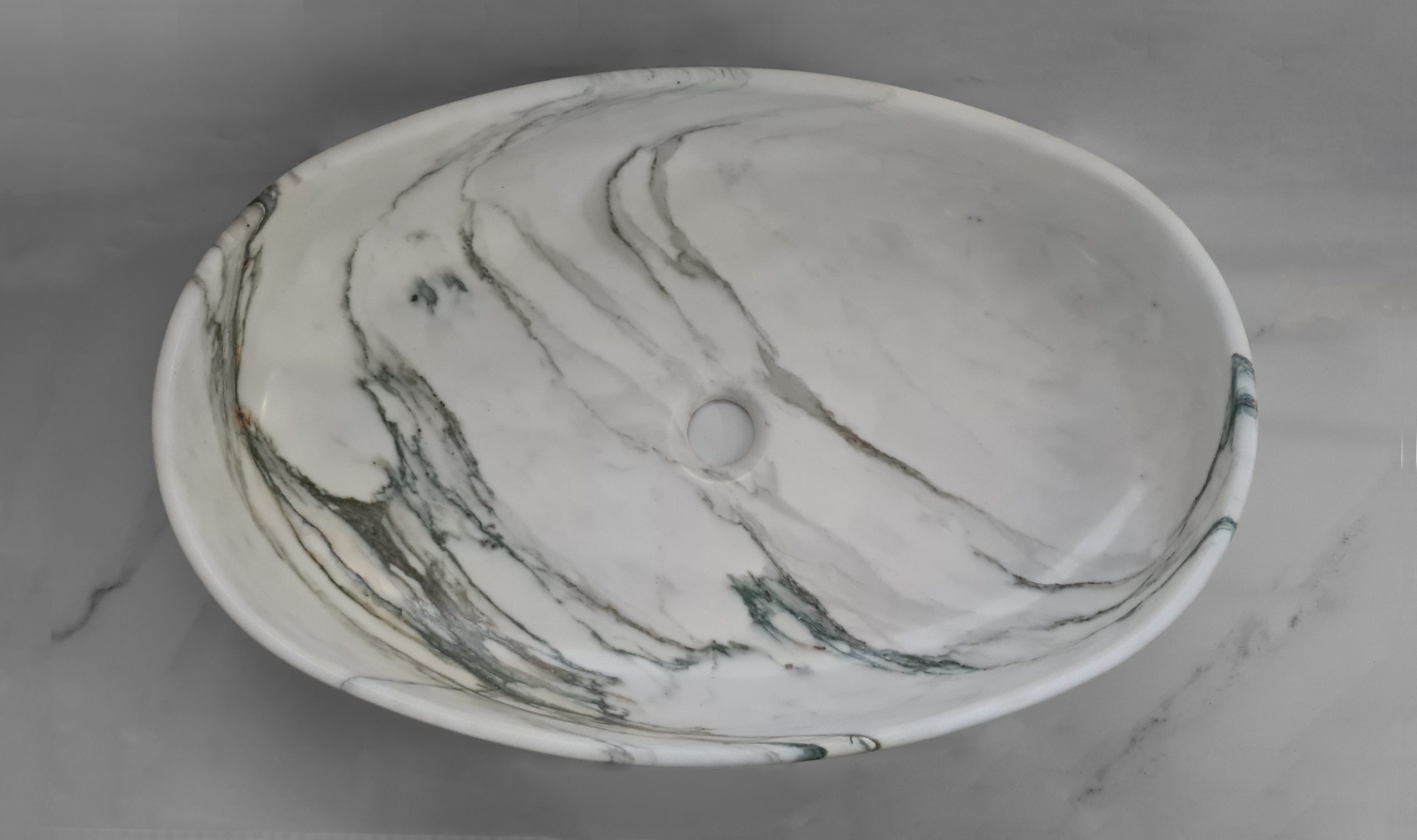 Επιτραπέζιος μασίφ νιπτήρας από ιταλικό μάρμαρο Statuario διαμορφωμένος στο χέρι.